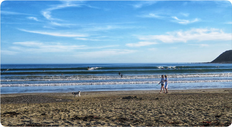 - Lyall Bay – Wellington’s most popular surfing beach. Two surf life saving clubs, dog walking / playing areas and loads of nearby cafes, including Maranui, Spruce Goose and The Botanist.