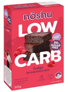 - Quick & easy brownies – use the Noshu 99% sugar free brownie mix – grain and added sugar free. Note that all of the Noshu products are low sugar, but they are not all gluten free